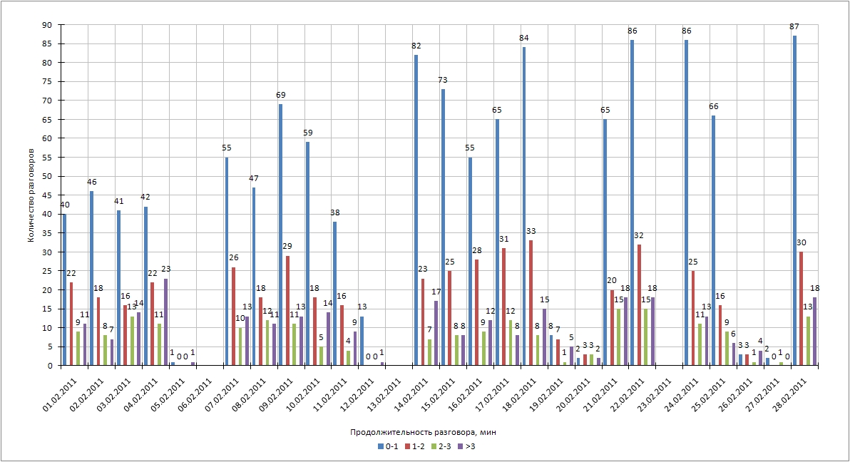 Во время работы корпоративного сервера IP-телефонии и сотового шлюза была накоплена и проанализирована статистическая информация: