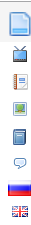 Иконки выбора языка находятся под иконками информационных сущностей и представлены флажками. Администрирование страниц и новостей на другом языке доступно не всем веб-корресподентам.